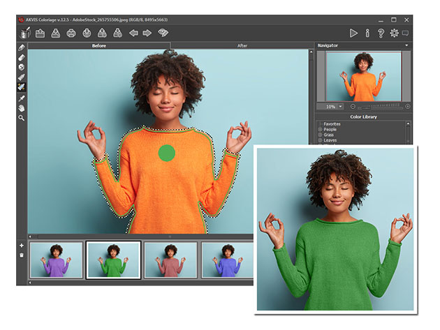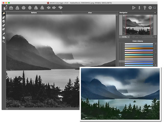 AKVIS Coloriage manipulates the colors of an image: from colorizing old black and white photos from your family album to replacing colors in your color photos. It creates natural-looking colorization in a quick and entertaining manner. It works equally well for coloring portraits, landscapes, fashion, and still life. The skin, sky, verdure, and tree color patterns help users to select realistic colors for their pictures. Coloriage is as easy to use as a coloring book. No layers manipulation, no complicated techniques, no more hours of frustration attempting to get just the look you want - everything is done with a few brush strokes.